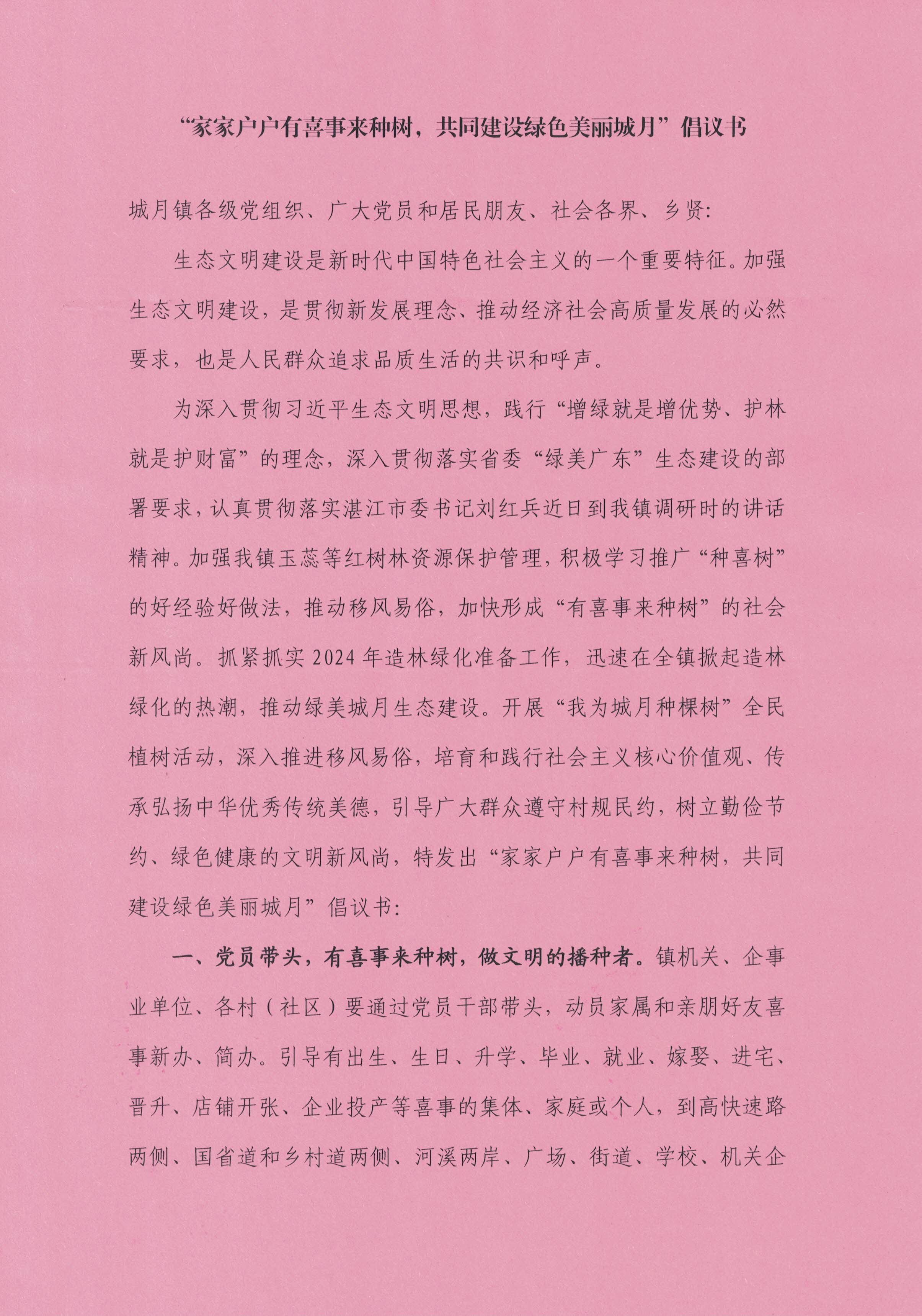 “家家戶戶有喜事來(lái)種樹,共同建設(shè)綠色美麗城月”倡議書