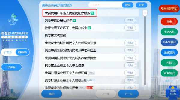 “粵智助”已實(shí)現(xiàn)全省行政村全覆蓋,在粵省事平臺點(diǎn)擊【辦事—專題—粵智助】,按熱門服務(wù)或部門查找自助機(jī),系統(tǒng)會自動(dòng)顯示距離最近的自助機(jī),在家門口就能辦成事。