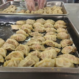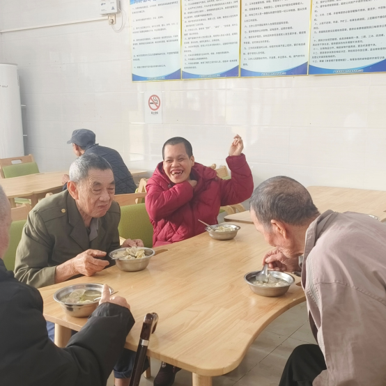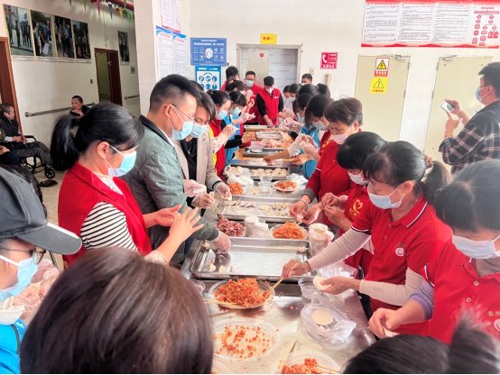 “爺爺,往這里來坐…”志愿者小心翼翼地把老人扶到餐桌前,為他們端上熱騰騰的餃子,還有部分志愿者推著餐車給行動不便的老人送去餃子。邊吃著餃子,邊和老人聊天,志愿者還親切地跟老人們交談,叮囑老人們保重身體,老人激動地握著志愿者的手說:“這活動太有意義了,謝謝你們對我們的關心和照顧”,臉上洋溢著幸福溫暖的笑容。