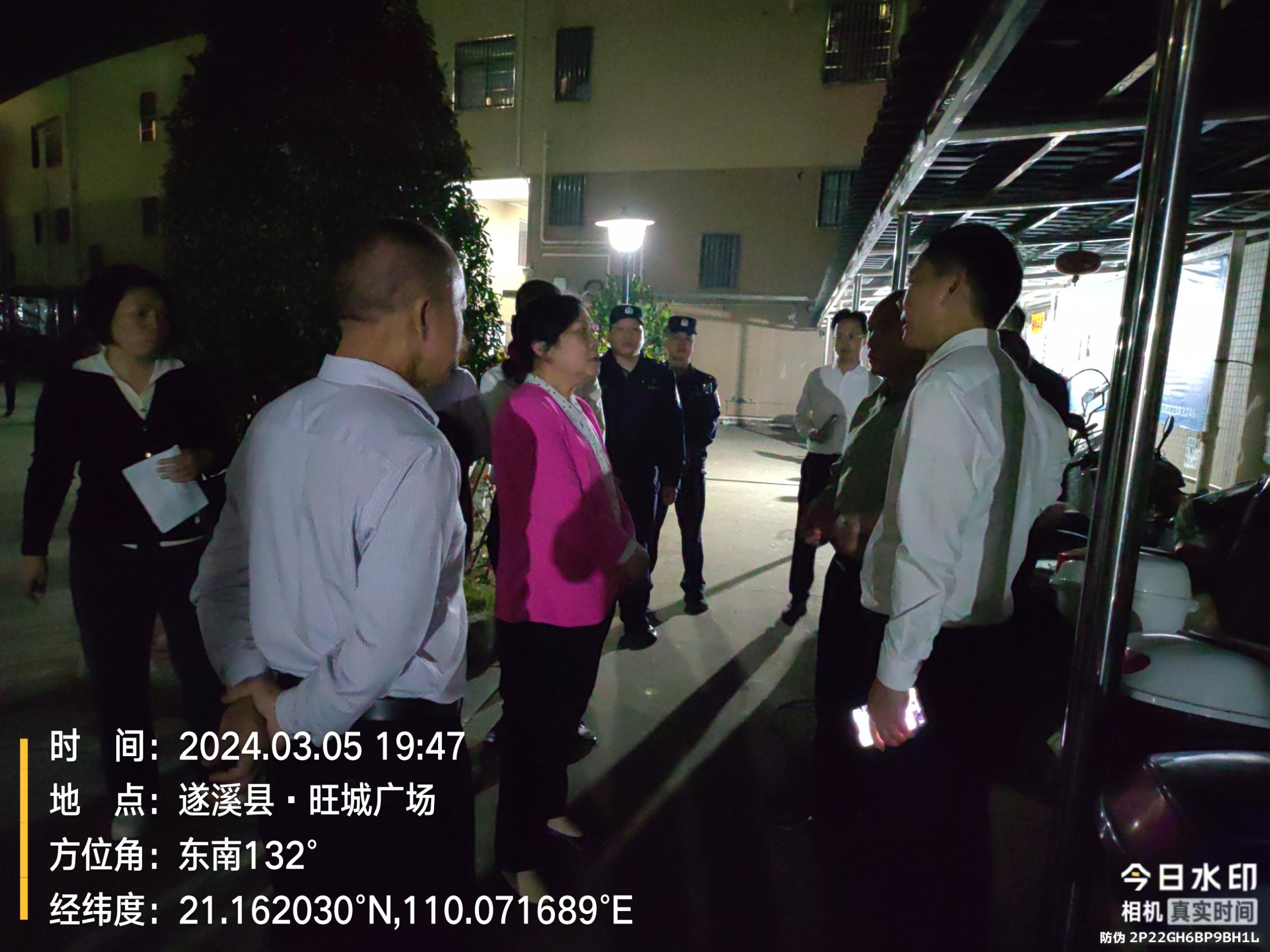 2024年3月5日,湛江市政協(xié)副主席、農(nóng)工黨湛江市委會(huì)主委陳國鳳一行到城月鎮(zhèn)開展消防安全檢查、“平安夜訪”活動(dòng)。首先,陳國鳳一行來到旺城廣場(chǎng)開展消防安全隱患排查工作,并詳細(xì)檢查了小區(qū)物業(yè)規(guī)范管理電動(dòng)車充電樁工作情況。國鳳同志強(qiáng)調(diào),一是要提高政治站位。深刻吸取近期全國各地消防事故教訓(xùn),時(shí)刻緊繃安全之弦,壓實(shí)壓細(xì)責(zé)任。堅(jiān)持問題導(dǎo)向,聚焦住宅小區(qū)的消防設(shè)施、充電區(qū)域等重點(diǎn)部位,加大安全隱患排查整治力度,堅(jiān)決把風(fēng)險(xiǎn)化解在萌芽之時(shí),全力保障人民群眾生命財(cái)產(chǎn)安全。二是要強(qiáng)化日常管理。對(duì)標(biāo)先進(jìn),認(rèn)真落實(shí)各項(xiàng)消防安全管理制度,做好電動(dòng)車停放充電的規(guī)范管理工作,合理規(guī)劃建設(shè)住宅小區(qū)充電設(shè)施,嚴(yán)管嚴(yán)控電動(dòng)車違規(guī)充電,持續(xù)提升消防應(yīng)急能力,全力筑牢安全底線。三是要加大宣傳力度。持續(xù)加強(qiáng)對(duì)物業(yè)管理人員等關(guān)鍵人群的安全培訓(xùn),扎實(shí)做好日常消防設(shè)施維護(hù)保養(yǎng)、防火檢查等工作。多措并舉加大社會(huì)面宣傳教育力度,不斷提升群眾的安全意識(shí)和自防自救能力,切實(shí)筑牢消防安全“防火墻”。