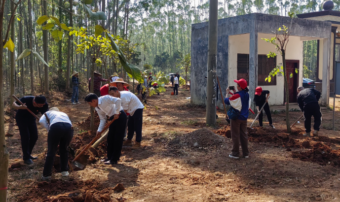 春風(fēng)化雨新栽樹(shù),綠葉紅花喜爭(zhēng)艷。為了助力“百千萬(wàn)工程”縱深發(fā)展,積極響應(yīng)省、市、縣關(guān)于推進(jìn)鄉(xiāng)村綠化有關(guān)工作要求,以實(shí)際行動(dòng)踐行“綠水青山就是金山銀山”的綠色發(fā)展理念,城月鎮(zhèn)仁里村根據(jù)“黨建引領(lǐng)、政企聯(lián)動(dòng)、多方參與”原則,積極對(duì)接幫扶單位湛江市委黨史研究室,發(fā)揮結(jié)黨建聯(lián)建共建優(yōu)勢(shì)。