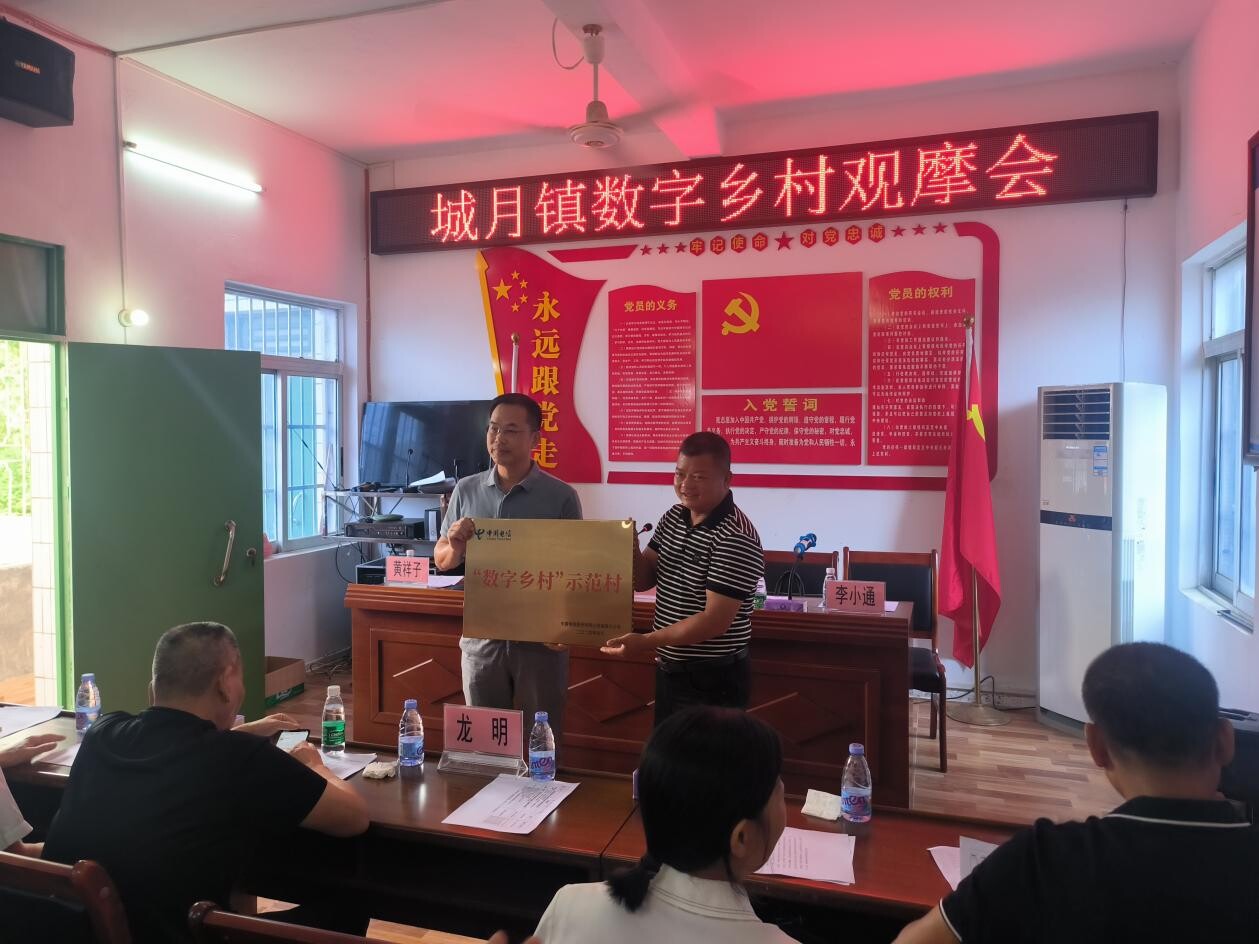 會上,舉行授牌儀式,中國電信遂溪分公司為虎頭坡村授予《“數(shù)字鄉(xiāng)村”示范村》牌匾。
