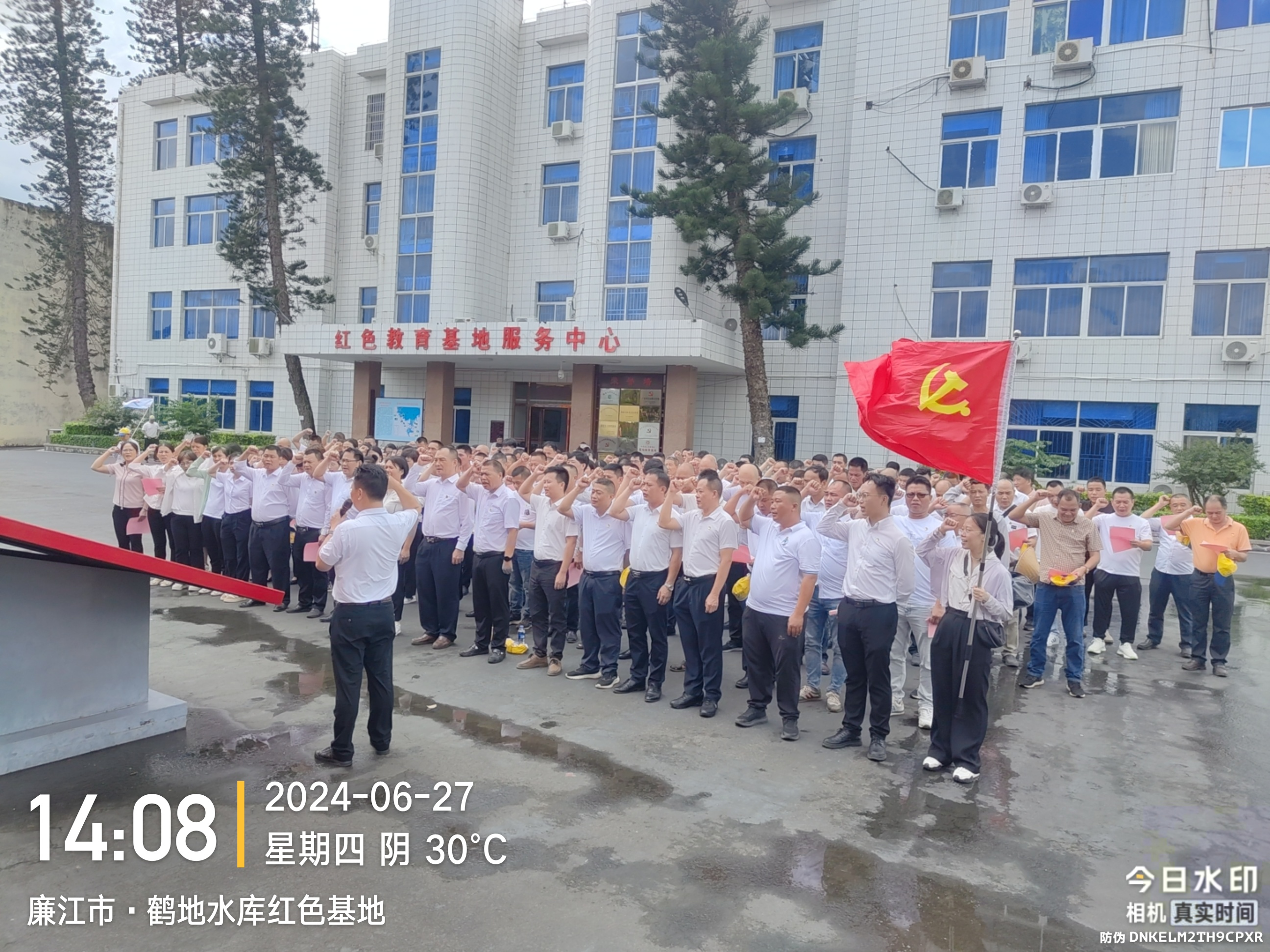 在鶴地水庫(kù)紅色教育基地前,全體黨員面向黨旗,莊嚴(yán)宣誓,重溫入黨誓詞。鏗鏘有力的誓言響徹云霄,激勵(lì)著每一位黨員牢記黨的宗旨,堅(jiān)定理想信念,永葆共產(chǎn)黨員的先進(jìn)本色。