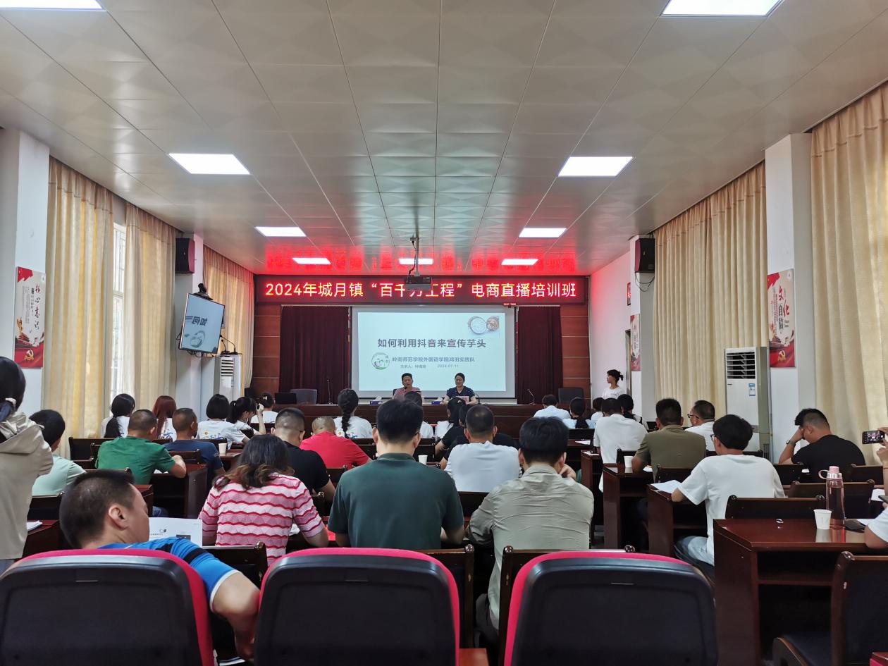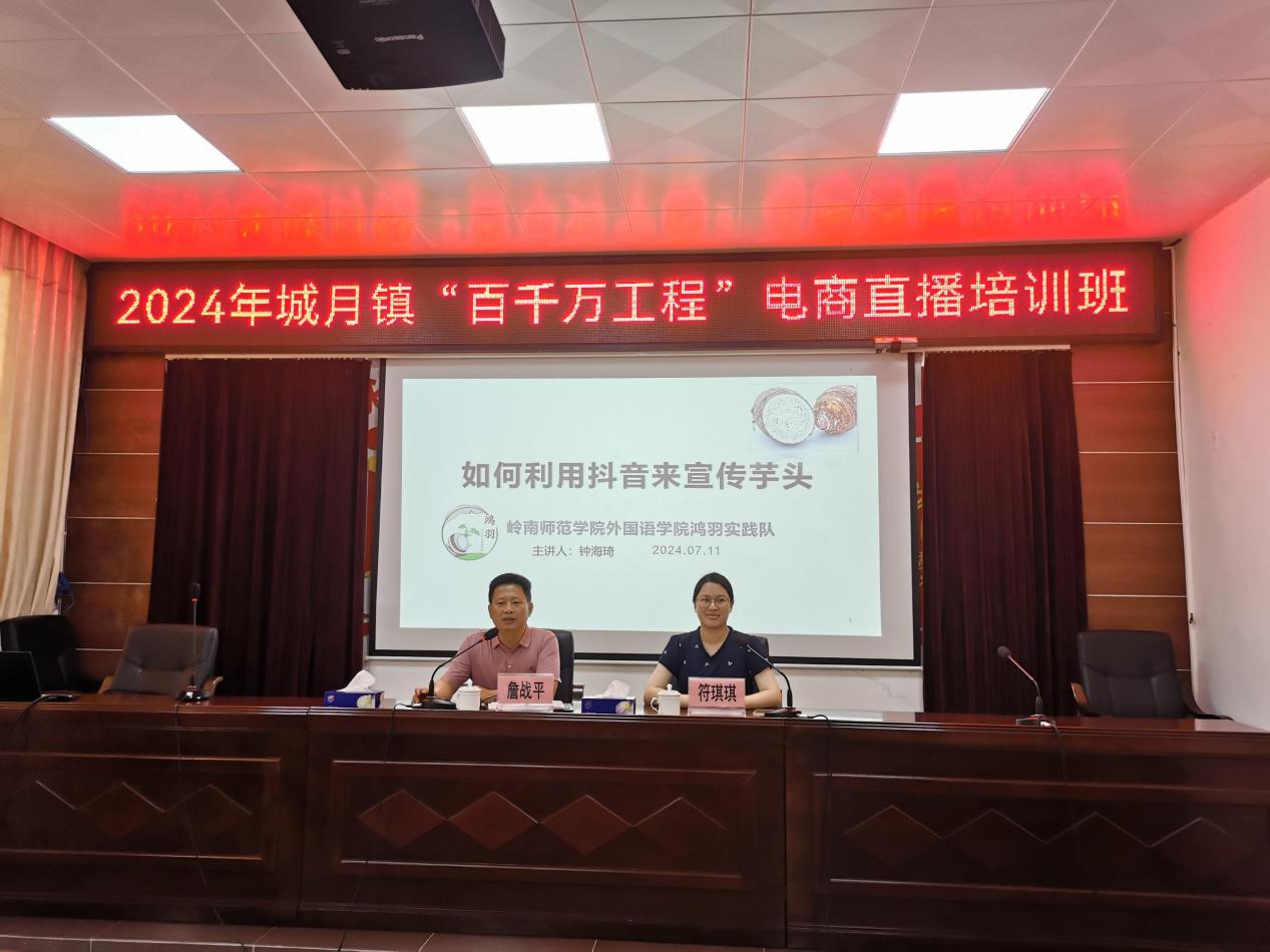 為助力群眾創(chuàng)業(yè)增收,以電商賦能鄉(xiāng)村振興,加力提速推進(jìn)“百千萬(wàn)工程”,7月11日上午,共青團(tuán)城月委員會(huì)聯(lián)合嶺南師范學(xué)院外國(guó)語(yǔ)學(xué)院“鴻羽”社會(huì)實(shí)踐隊(duì)開(kāi)展“百千萬(wàn)工程”電商直播培訓(xùn)班,城月鎮(zhèn)委副書(shū)記詹戰(zhàn)平主持開(kāi)展此次培訓(xùn)。
