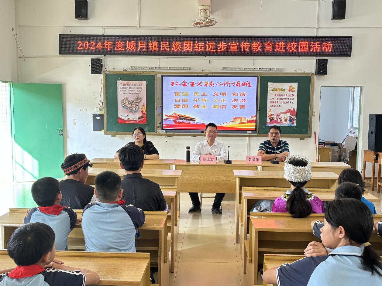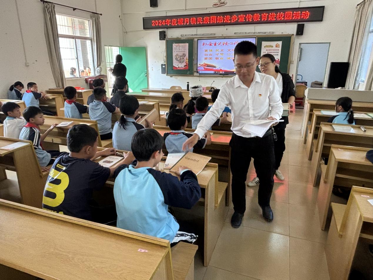 根據(jù)遂溪縣委統(tǒng)戰(zhàn)部《關(guān)于開展民族團結(jié)進步宣傳教育活動的通知》要求,11月12日上午,城月鎮(zhèn)黨委委員陳土君到前進學(xué)校開展2024年城月鎮(zhèn)民族團結(jié)進步宣傳教育進校園活動,前進學(xué)校校長李曉東和該校34名黎族、苗族、彝族、壯族等少數(shù)民族籍貫的學(xué)生參加活動?;顒油ㄟ^理論宣講、播放民族團結(jié)進步宣傳片、發(fā)放宣傳冊和發(fā)放文具等方式進行。通過開展活動,全面貫徹黨的民族政策,深化民族團結(jié)進步教育,鑄牢中華民族共同體意識,加強民族交往交流交融,促進各民族像石榴籽一樣緊緊抱在一起,共同團結(jié)奮斗、共同繁榮發(fā)展。