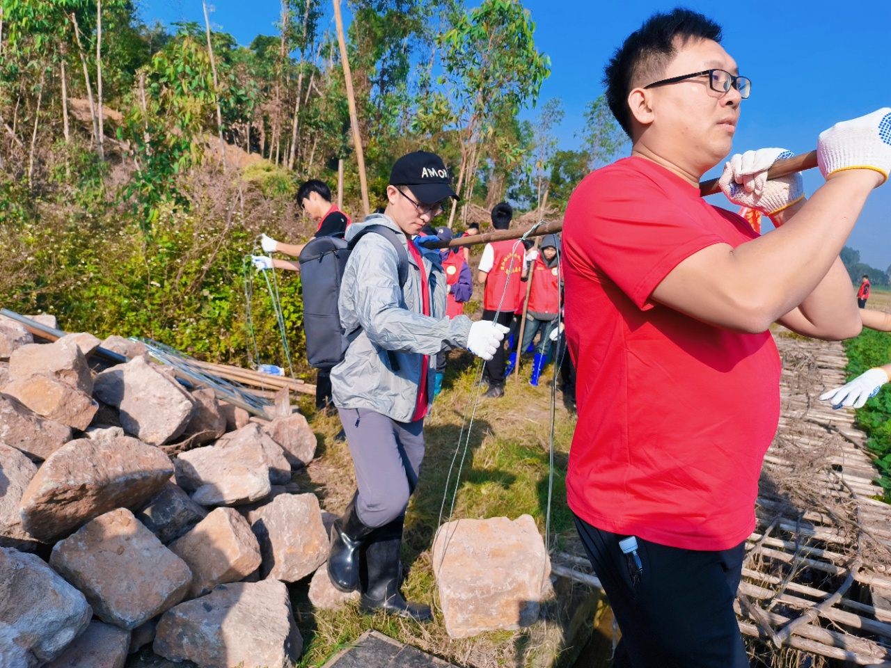 活動伊始,志愿者們齊聚海灘涂。大家分工明確,有的負責搬運石頭,這些石頭大小不一、形狀各異,它們或來自附近的山地,或取自海灘的周邊,帶著大地與海洋的氣息。志愿者們兩人一組、喊著號子,將沉重的石頭搬運到指定地點,每個人的臉上都寫滿了堅毅與熱情。