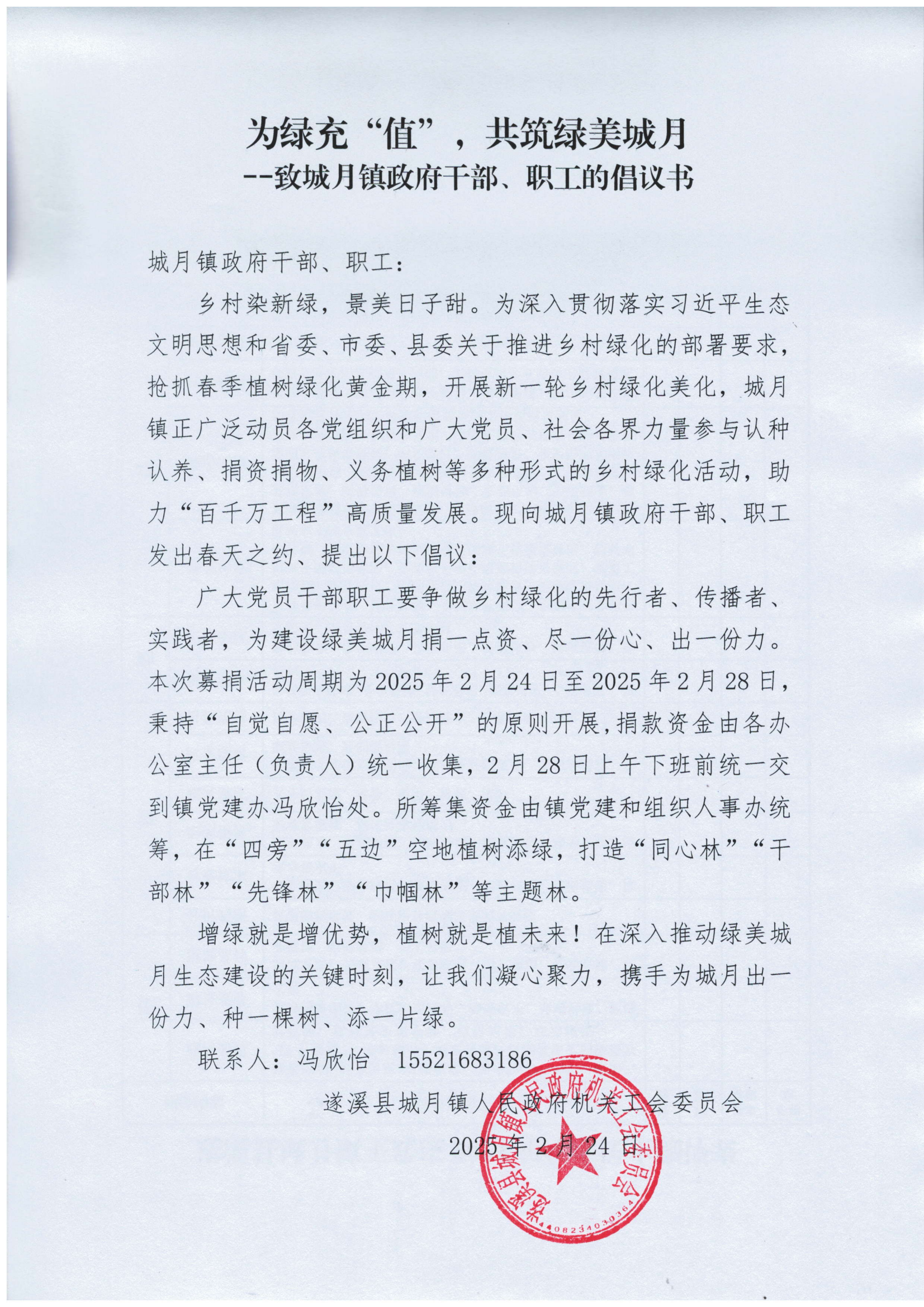 --致城月鎮(zhèn)政府干部、職工的倡議書