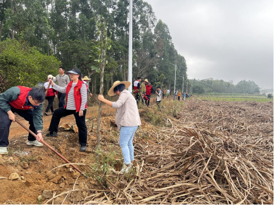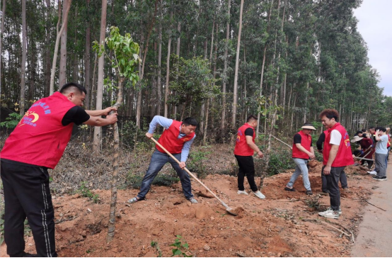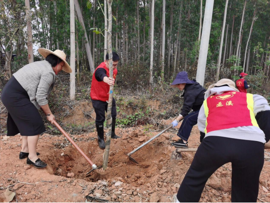 在邦機村、石塘村等各活動現(xiàn)場,呈現(xiàn)出一片熱火朝天的景象。大家熱情高漲,紛紛手持鐵鍬、鋤頭等工具迅速投入到勞動中。在植樹過程中,大家互相配合,分工明確,秩序井然。有的負(fù)責(zé)運苗扶樹,小心翼翼地將樹苗搬運到指定位置,扶正樹苗使其筆直挺立;有的專注于挖坑培土,揮動鐵鍬,一鍬一鍬地挖出樹坑,再仔細(xì)地將土培在樹苗根部;還有的忙著踩實澆水,確保樹苗能夠穩(wěn)穩(wěn)地扎根在土壤里,吸收充足的水分。