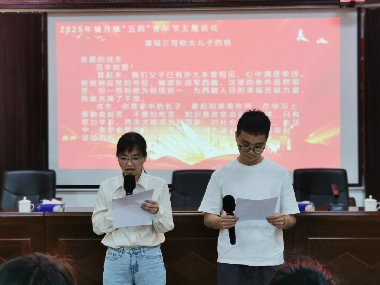 人間四月,萬物笙歌,朝氣最難得。為深入學(xué)習(xí)落實習(xí)近平總書記關(guān)于青年工作的重要思想,紀(jì)念五四運動106周年以及中國共產(chǎn)主義青年團(tuán)成立103周年,引導(dǎo)青年干部堅定理想信念、砥礪奮進(jìn),城月鎮(zhèn)在鎮(zhèn)政府一樓會議室開展“青春心向黨,建功新時代”城月鎮(zhèn)五四青年節(jié)主題黨日活動。鎮(zhèn)政府青年干部、各中小學(xué)教師青年代表等60余人歡聚一堂,以理論之光、信仰之聲、知識之力,傳承五四精神,厚植愛國情懷,展現(xiàn)新時代青年的責(zé)任與擔(dān)當(dāng)。