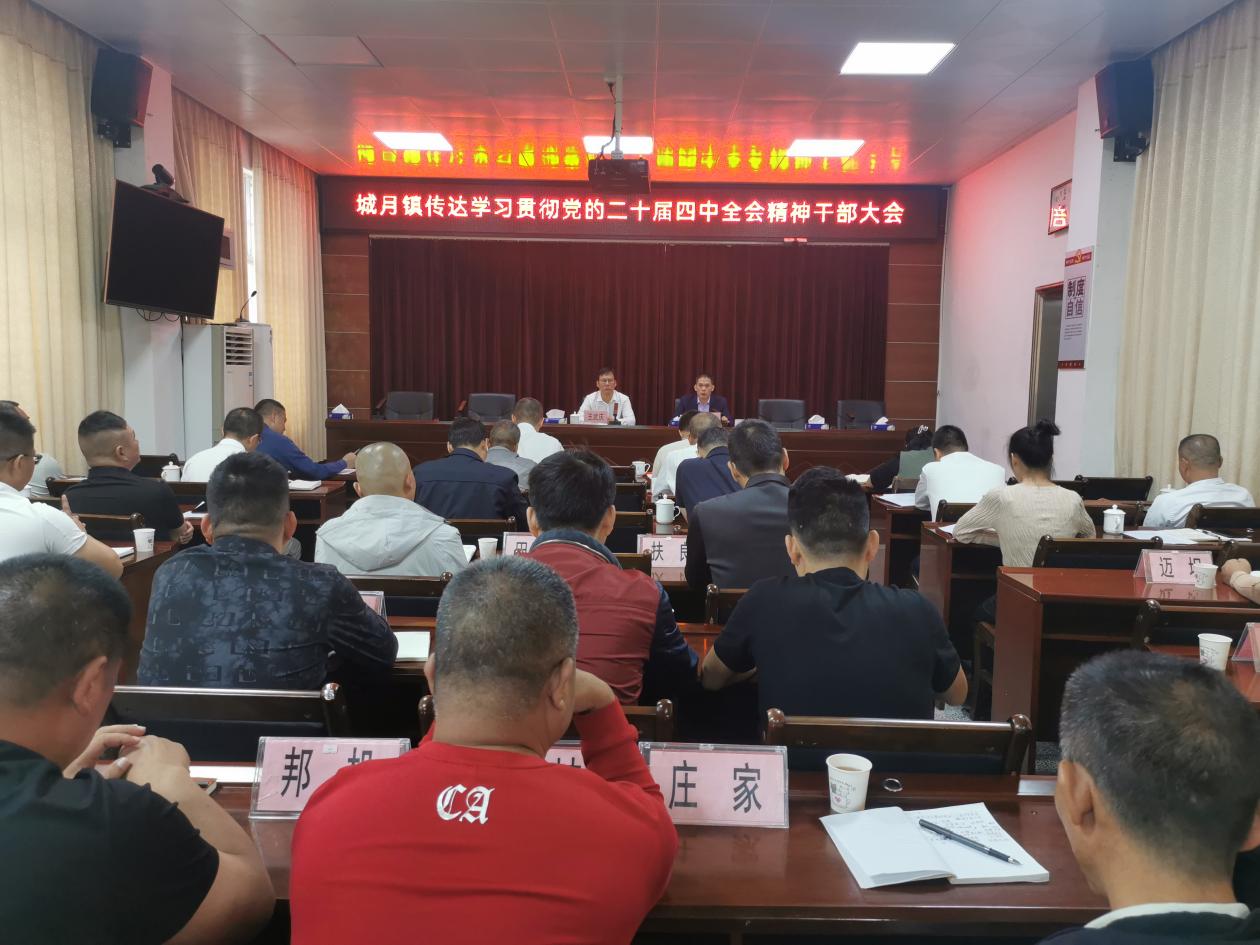 2025年10月28日,城月鎮(zhèn)召開傳達(dá)學(xué)習(xí)貫徹黨的二十屆四中全會精神干部大會,會議由鎮(zhèn)黨委副書記、鎮(zhèn)長楊振海主持,全體領(lǐng)導(dǎo)班子成員(含主任科員)、機關(guān)(企)事業(yè)單位負(fù)責(zé)人、村(社區(qū))支部書記、鎮(zhèn)中層正職以上干部等共90余人參加會議。