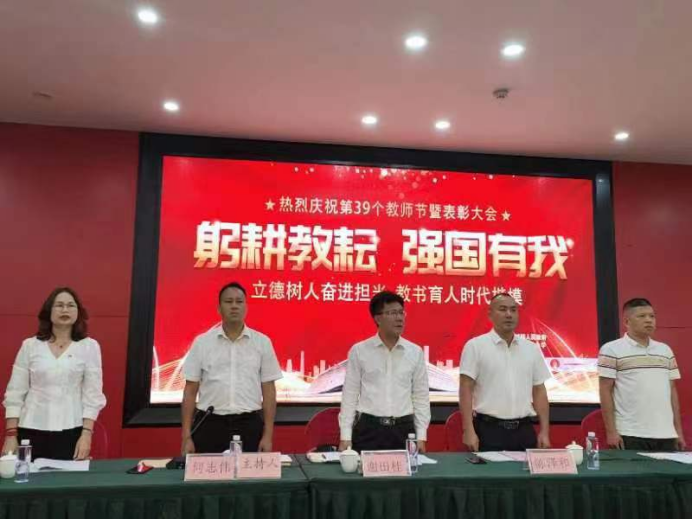 云天收夏色,木葉動秋聲。9月10日,為慶祝第39個教師節(jié),遂溪縣附城鎮(zhèn)人民政府、遂溪縣附城中心小學隆重舉行“躬耕教壇,強國有我”第39個教師節(jié)暨教師節(jié)表彰活動。學校全體教師歡聚一堂,共享節(jié)日快樂。