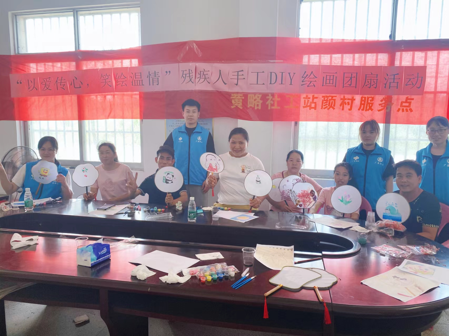 近年來,社會(huì)對殘疾人的關(guān)注日益增加,為了滿足轄區(qū)殘疾人員的娛樂需求和提高他們?nèi)谌肷鐣?huì)的能力,感受五彩繽紛的色彩之美,豐富他們的業(yè)余生活,為他們提供一個(gè)豐富、有意義的社交和學(xué)習(xí)平臺(tái),促進(jìn)他們的身心健康和全面發(fā)展,4月29日上午,顏村社工服務(wù)點(diǎn)社工在黃略鎮(zhèn)康園中心舉辦了“以心傳愛,笑繪溫情”殘疾人手工DIY繪畫團(tuán)扇活動(dòng)。