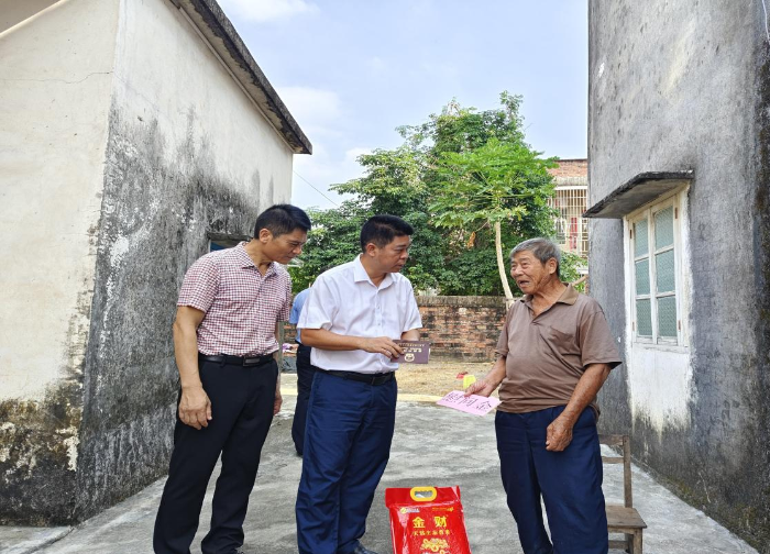 歲歲重陽秋風(fēng)勁,敬老孝老暖人心。為弘揚中華民族敬老愛老的傳統(tǒng)美德,進一步引領(lǐng)敬老、愛老、助老新風(fēng)尚,營造重陽節(jié)歡樂祥和的氛圍,讓百歲老人們度過一個溫馨快樂的時光,10月16日遂溪縣副縣長、黃略鎮(zhèn)黨委書記陳武,縣公安局副局長彭亞雄到黃略鎮(zhèn)北合和新村開展百歲老人慰問活動,鎮(zhèn)黨委委員梁菲珊、鎮(zhèn)人大副主席陳春陪同慰問。