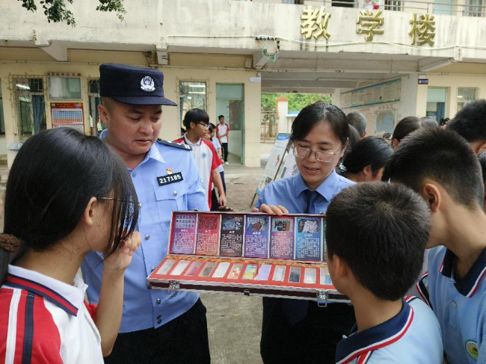 領(lǐng)導(dǎo)指引師生們觀看仿真毒品模型,讓學(xué)生近距離觀察,直觀感受毒品的偽裝性和危害性,有效提升了學(xué)生的警惕性。
