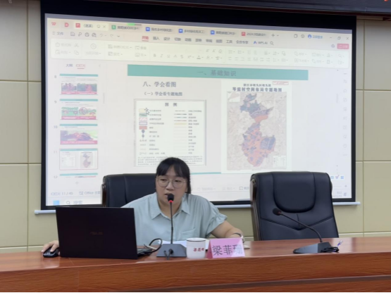 在業(yè)務培訓環(huán)節(jié),鎮(zhèn)黨委委員梁菲珊從基礎知識、選地、選樹、制圖四個角度,圍繞為什么種、在哪里種、種什么樹、怎樣種、如何管等內(nèi)容進行講解,為如何制作“兩圖一表”作出進一步指導,并要求各村提前制定規(guī)劃方案,做好苗木預訂、技術指導及資金籌措等準備工作,為參會人員提供了切實可行的工作思路和行動指南。