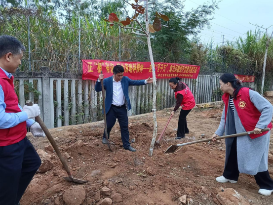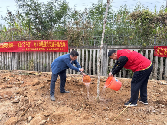 為深入學(xué)習(xí)貫徹習(xí)近平生態(tài)文明思想,奮進“百千萬”,助力風(fēng)貌提升,1月23日下午,黃略鎮(zhèn)在茅下村高鐵橋旁開展“正‘植’有你,我為黃略種棵樹”黨建共建植樹行動。湛江市市場監(jiān)督管理局局長林挺和遂溪縣副縣長、黃略鎮(zhèn)黨委書記陳武帶隊,湛江市市場監(jiān)督管理局干部、鎮(zhèn)部分領(lǐng)導(dǎo)班子、茅村村干部、黨員群眾志愿者共50名干部群眾參與本次植樹活動。