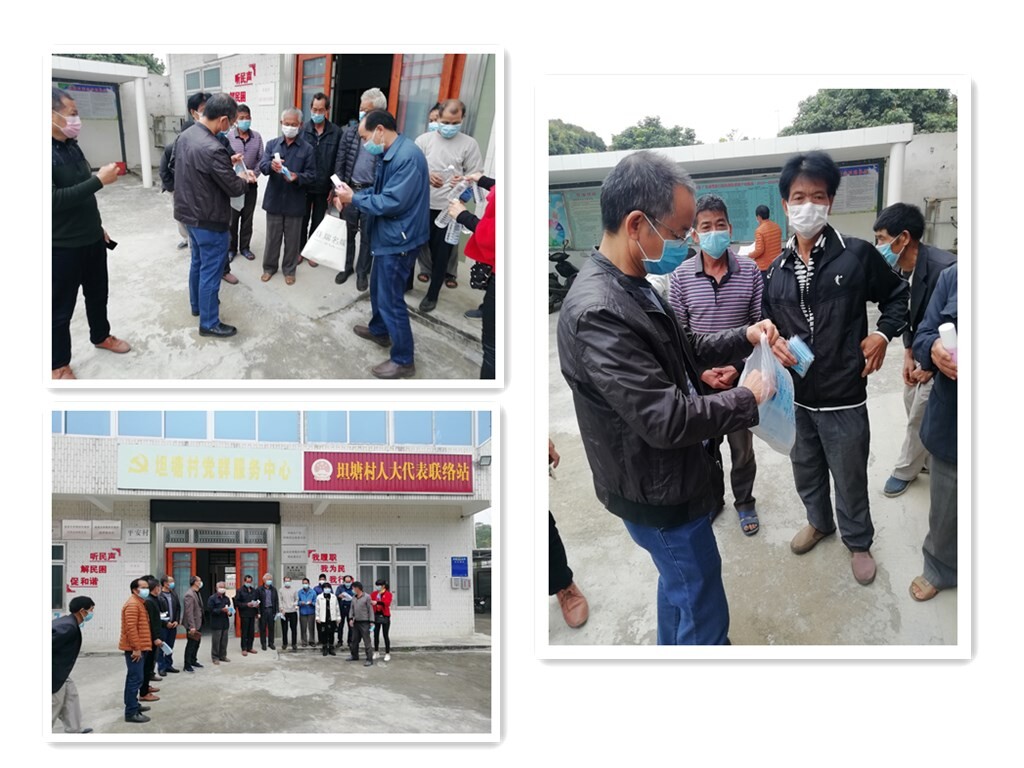 縣人大代表鐘廣太給群眾免費(fèi)發(fā)放口罩、消毒液等防護(hù)用品