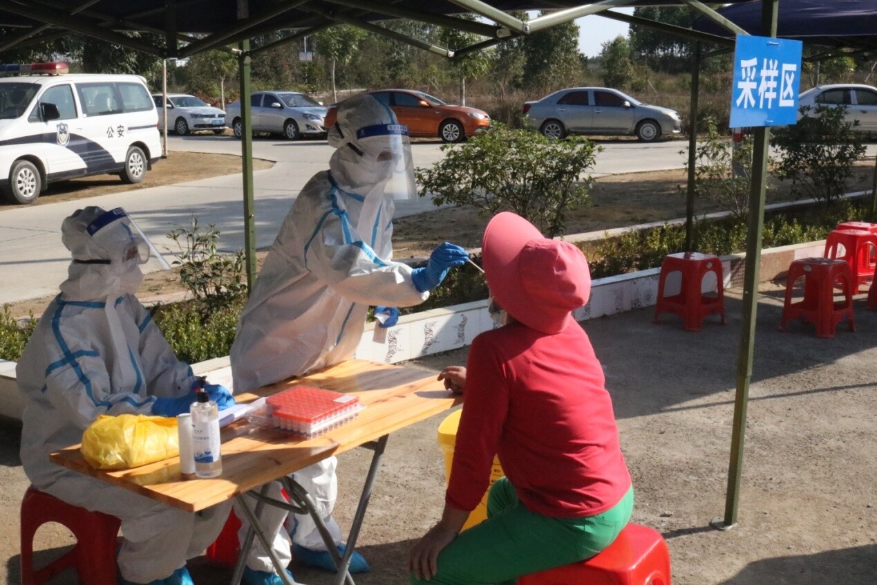 本次演練以姓方村方某新冠肺炎檢測(cè)結(jié)果是陽(yáng)性為模擬案例,姓方村、坦塘村委會(huì)、鎮(zhèn)三人小組、鎮(zhèn)衛(wèi)生院、鎮(zhèn)委鎮(zhèn)政府、鎮(zhèn)派出所等各級(jí)迅速啟動(dòng)應(yīng)急預(yù)案。演練現(xiàn)場(chǎng)分為全村封鎖、對(duì)外出村民進(jìn)行勸阻返回、流行病調(diào)查、體溫檢測(cè)、核酸檢測(cè)采樣、送檢復(fù)核、流調(diào)、密接人員臨時(shí)隔離、移送病人、場(chǎng)所消殺、全民核酸檢測(cè)、村民封閉期間日常生活保障等完整演練?,F(xiàn)場(chǎng)檢測(cè)人員均佩戴口罩、身穿防護(hù)服,參與演練的群眾佩戴口罩有序進(jìn)場(chǎng)。演練過(guò)程緊張有序、科學(xué)規(guī)范,充分檢驗(yàn)了預(yù)案的實(shí)操性,幫助轄區(qū)群眾熟悉了核酸檢測(cè)的流程,也及時(shí)鍛煉了隊(duì)伍,總結(jié)了經(jīng)驗(yàn)。