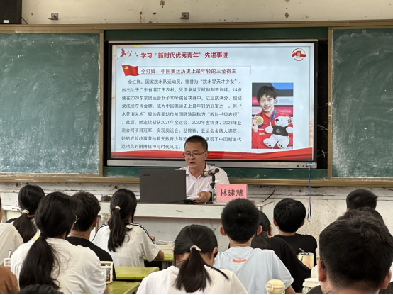 目光從歷史回到當(dāng)下,林建慧同志又向同學(xué)們介紹了“新時(shí)代優(yōu)秀青年”的代表——奧運(yùn)冠軍全紅嬋和“時(shí)代楷?!秉S文秀的先進(jìn)事跡。他贊揚(yáng)全紅嬋年紀(jì)雖小卻意志頑強(qiáng)、刻苦訓(xùn)練、為國爭光的拼搏精神;緬懷黃文秀扎根基層、傾情奉獻(xiàn),將青春和生命獻(xiàn)給脫貧攻堅(jiān)事業(yè)的崇高選擇。林建慧指出,她們雖然身處不同領(lǐng)域,但都展現(xiàn)了新時(shí)代中國青年有理想、有本領(lǐng)、有擔(dān)當(dāng)?shù)那啻猴L(fēng)采,是同學(xué)們學(xué)習(xí)的榜樣。