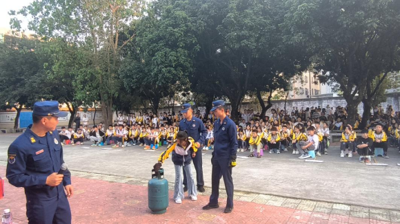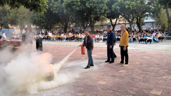 活動(dòng)現(xiàn)場,消防員向全體師生講解各類消防器材讓他們更加全面地了解消防器材的性能和使用方法、火災(zāi)預(yù)防常識以及發(fā)生火災(zāi)時(shí)的注意事項(xiàng)等內(nèi)容。消防員們在現(xiàn)場進(jìn)行了一次演練,帶領(lǐng)他們身臨其境地感受火場救援,講解的消防知識內(nèi)容貼近生活、貼近學(xué)生、貼近實(shí)際。