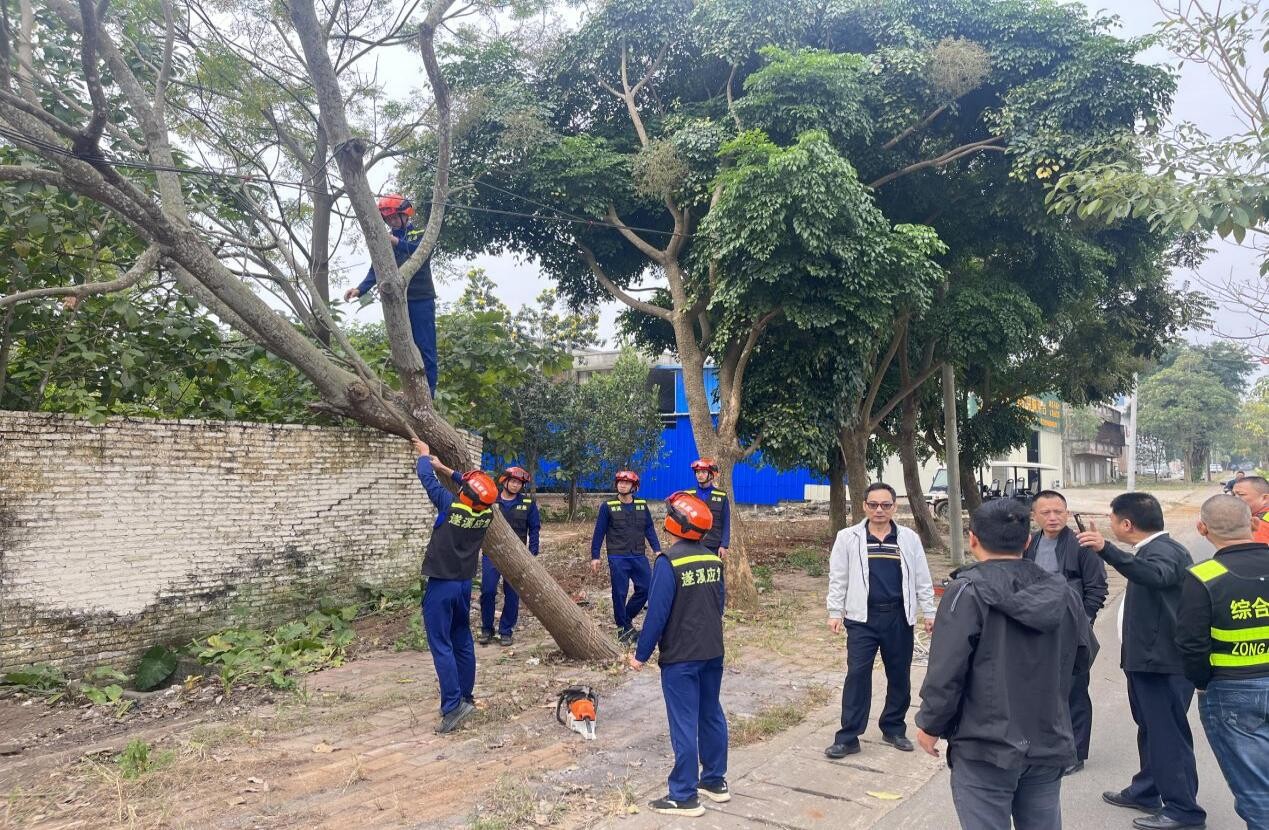 收到指示后,縣森林消防隊指導員梁海建帶領森林消防隊1車7人前往嶺北鎮(zhèn)銀嶺酒店對面道路旁切割倒塌樹木,及時排除安全隱患。