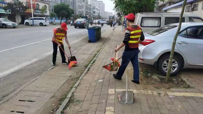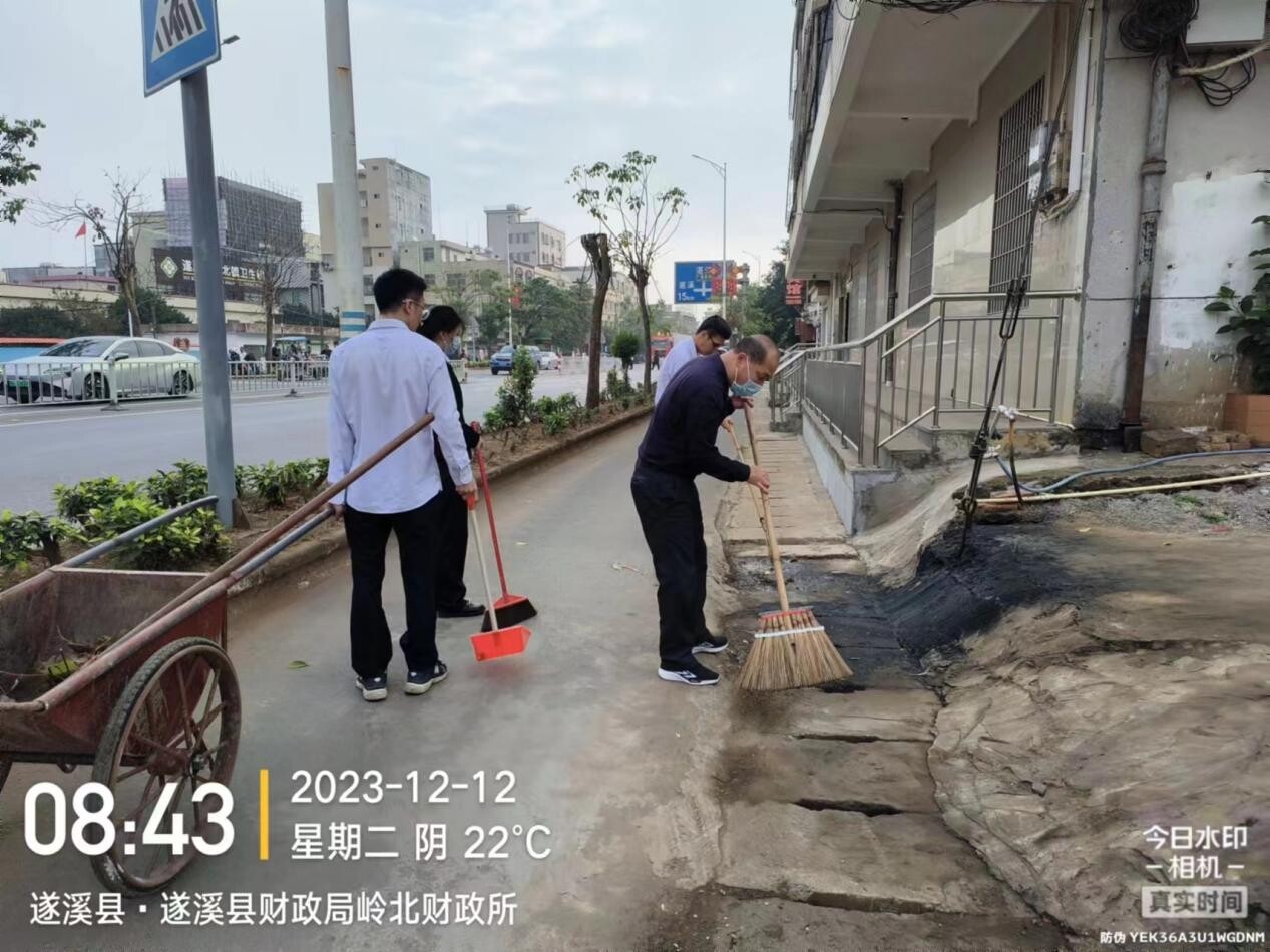 圖為嶺北農(nóng)商行陳澤主任帶領(lǐng)農(nóng)商行人員到網(wǎng)格區(qū)打掃衛(wèi)生