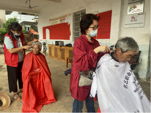 社工主動(dòng)招呼村民們過來剪頭發(fā),與村民們親切交談,了解他們的生活狀況和需求。志愿者們耐心細(xì)致地為每一位村民修剪發(fā)型。