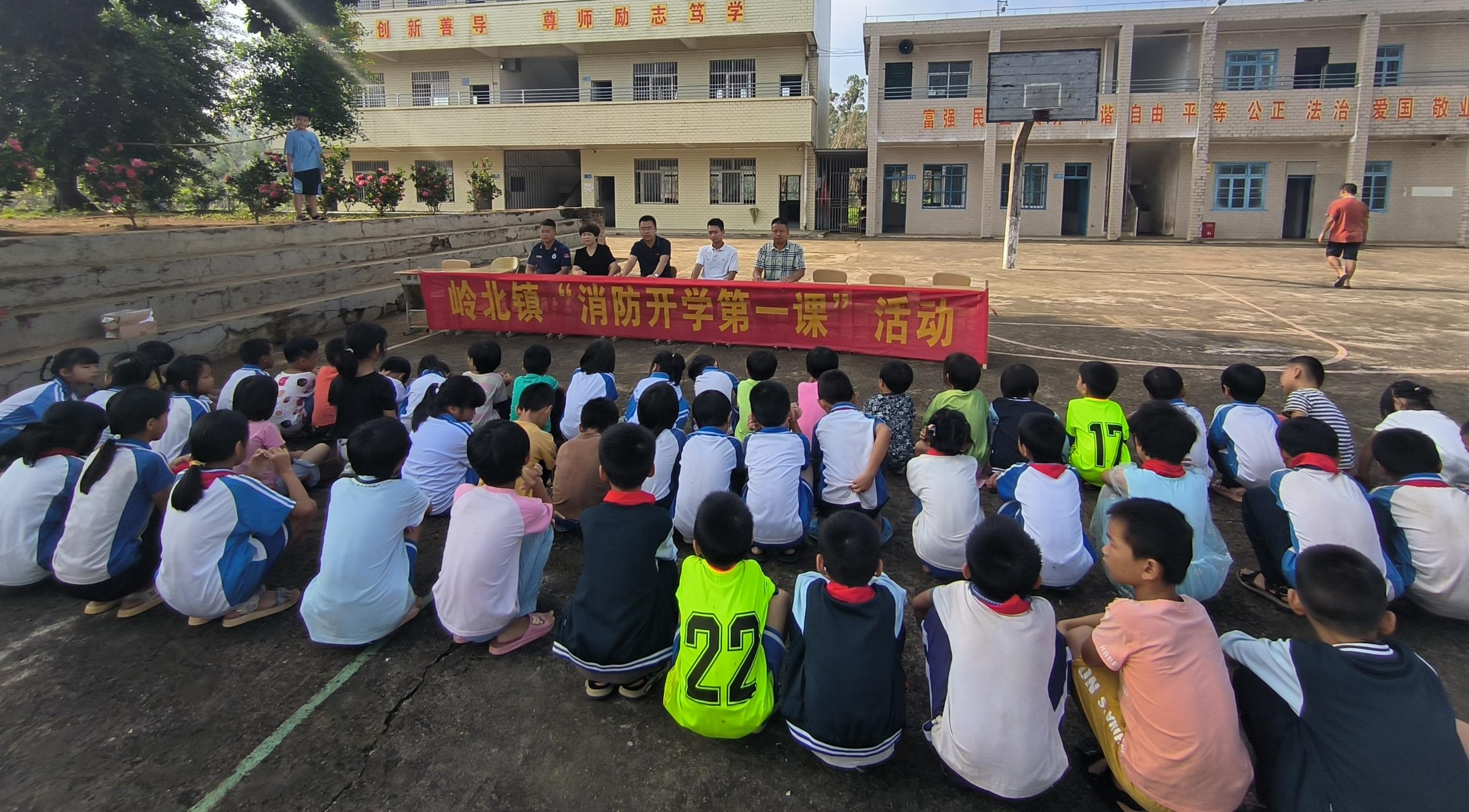 為加強(qiáng)校園消防安全工作,進(jìn)一步推進(jìn)安全生產(chǎn)治本攻堅(jiān)三年行動(dòng)走深走實(shí),全面增強(qiáng)師生消防安全意識(shí)和自防自救力。9月27日上午,嶺北鎮(zhèn)黨委委員、副鎮(zhèn)長(zhǎng)楊一軍、副鎮(zhèn)長(zhǎng)董景杏、副鎮(zhèn)長(zhǎng)唐毅鵬帶領(lǐng)應(yīng)急辦、宣傳辦、禁毒辦及專職消防隊(duì)走進(jìn)轄區(qū)校園扎實(shí)開展了形式多樣、內(nèi)容豐富的消防宣傳教育活動(dòng),為師生們帶來(lái)有新意、趣味足的“消防安全開學(xué)第一課”。