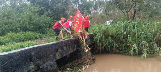 泉水村黨支部黨員志愿者清理河道淤積樹枝