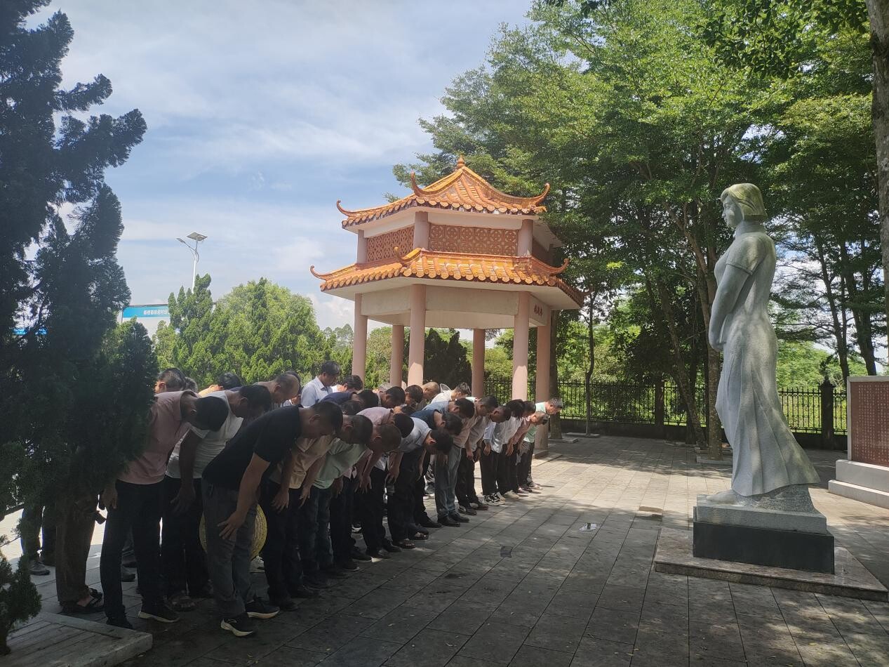 在洪文澤書記的帶領(lǐng)下,全體人員在鐘竹筠雕像面前三鞠躬,致敬革命先烈。