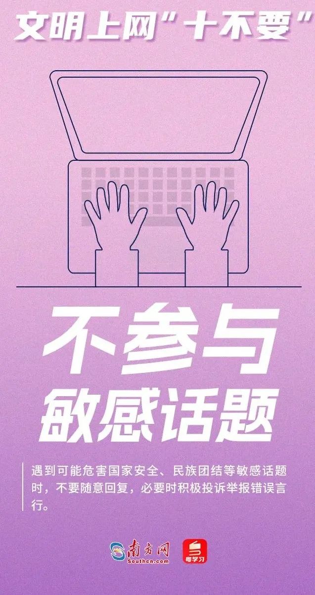 如今,互聯(lián)網(wǎng)行業(yè)發(fā)展迅速,網(wǎng)絡(luò)已成為我們?nèi)粘I?、生產(chǎn)工作中必不可少的一部分需要注意的是網(wǎng)絡(luò)上的發(fā)言不但真假難有些甚至是在肆意辱罵他人或人肉曝光他人信息等互聯(lián)網(wǎng)不是“法外之地”這些網(wǎng)絡(luò)行為不僅不文明有的甚至觸犯法律。作為新時(shí)代網(wǎng)民我們要如何規(guī)范自己的網(wǎng)絡(luò)行為?一起來看文明上網(wǎng)“十不要”。