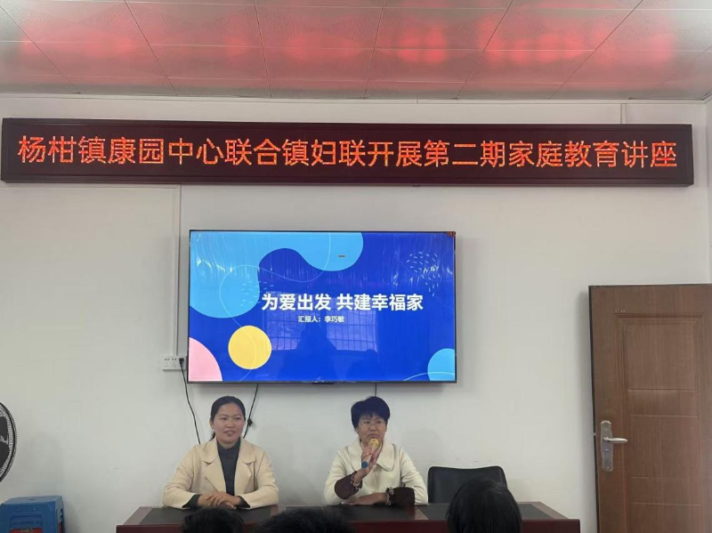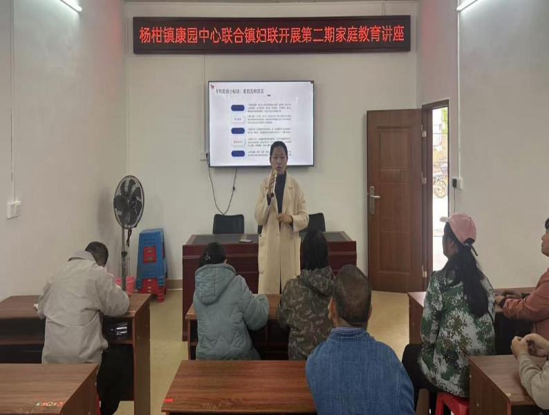 2024年12月26日上午,楊柑鎮(zhèn)康園中心聯(lián)合鎮(zhèn)婦聯(lián)成功舉辦了第二期家庭教育專題講座。此次活動(dòng)旨在提升家庭成員間的溝通與理解能力,促進(jìn)家庭和諧與社會(huì)穩(wěn)定。