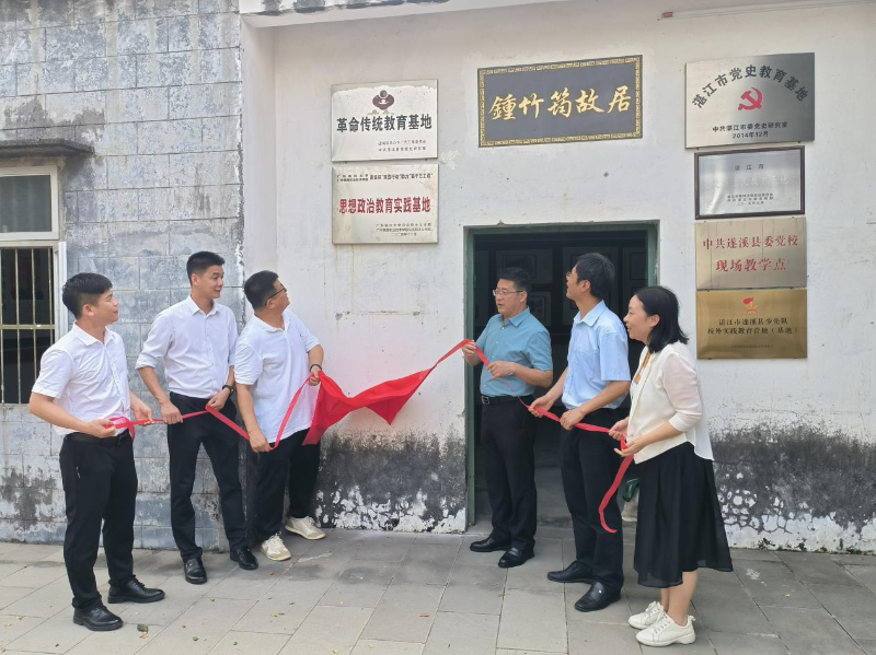 下午15時(shí),廣東醫(yī)科大學(xué)團(tuán)委書記、遂溪縣“雙百行動(dòng)”服務(wù)隊(duì)隊(duì)長(zhǎng)陳炳權(quán),廣東醫(yī)科大學(xué)馬克思主義學(xué)院副院長(zhǎng)沈廷川,廣州鐵路職業(yè)技術(shù)學(xué)院馬克思主義學(xué)院院長(zhǎng)馮甫等一行抵達(dá)楊柑鎮(zhèn)鐘竹筠故居。在這里,他們與楊柑鎮(zhèn)黨委書記蔣養(yǎng)等領(lǐng)導(dǎo)班子成員舉行“思想政治教育實(shí)踐基地”揭牌儀式。
