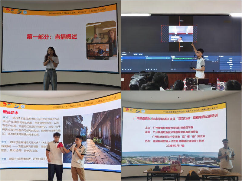 本次直播電商培訓(xùn)班為期3天,采用“專題授課+實(shí)操演示+現(xiàn)場(chǎng)示范”模式。內(nèi)容深度聚焦直播全流程,涵蓋直播各環(huán)節(jié)及數(shù)據(jù)分析、售后與客戶管理等關(guān)鍵領(lǐng)域。授課團(tuán)隊(duì)由廣州鐵路職業(yè)技術(shù)學(xué)院經(jīng)驗(yàn)豐富、專業(yè)過(guò)硬的師生組成,結(jié)合楊柑鎮(zhèn)實(shí)際,為學(xué)員量身定制實(shí)用課程,助力其快速掌握技能,培養(yǎng)專業(yè)人才,推動(dòng)楊柑鎮(zhèn)農(nóng)村電商發(fā)展。