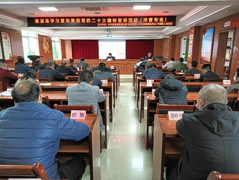 為鄉(xiāng)村振興助力》的宣講報(bào)告。宣講報(bào)告會(huì)由洋青鎮(zhèn)黨委書(shū)記陳武主持。洋青鎮(zhèn)領(lǐng)導(dǎo)班子,各村(居)黨支部書(shū)記或主任、各機(jī)關(guān)事業(yè)單位負(fù)責(zé)人、鎮(zhèn)中層以上干部等參加宣講會(huì)。
