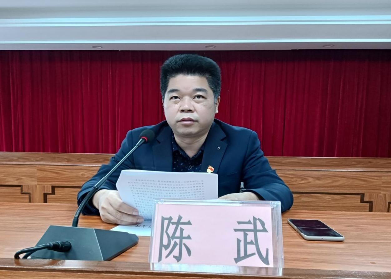 圖為洋青鎮(zhèn)黨委書(shū)記陳武主持宣講報(bào)告會(huì)(簡(jiǎn)陳明 攝)