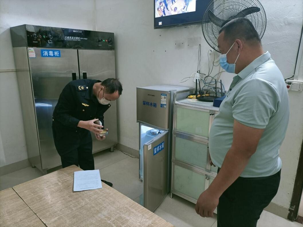 圖為洋青市場(chǎng)監(jiān)督管理所檢查食堂食品安全問題