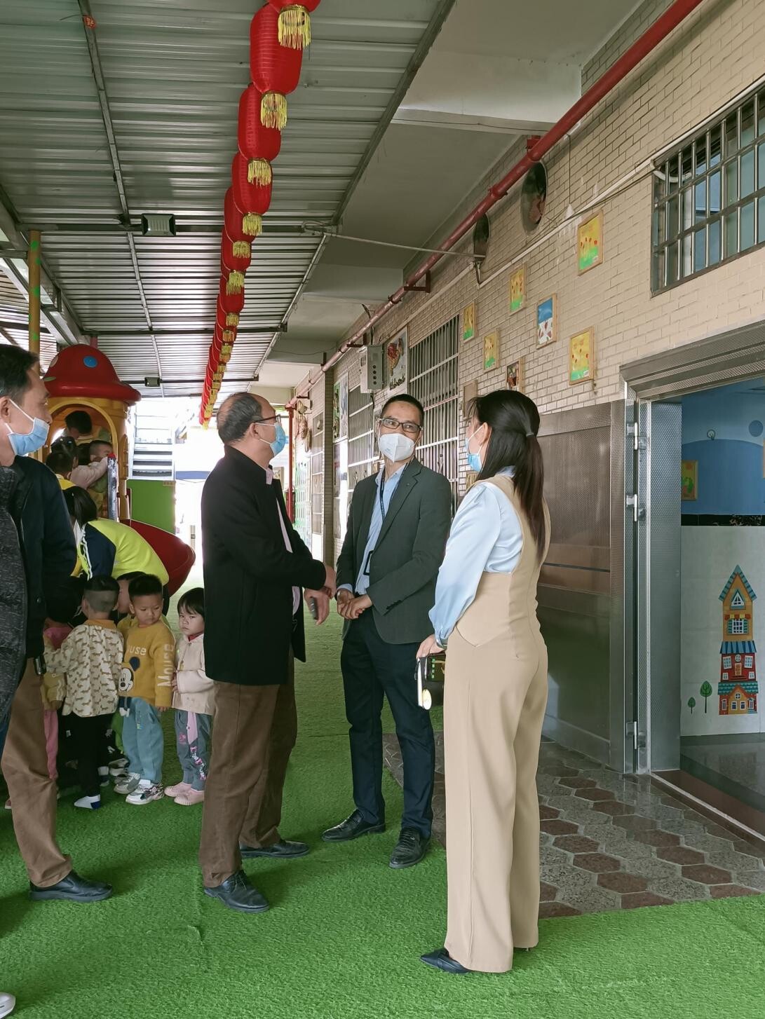 圖為姚孟副鎮(zhèn)長(zhǎng)(中)對(duì)幼兒園安全工作進(jìn)行指導(dǎo)