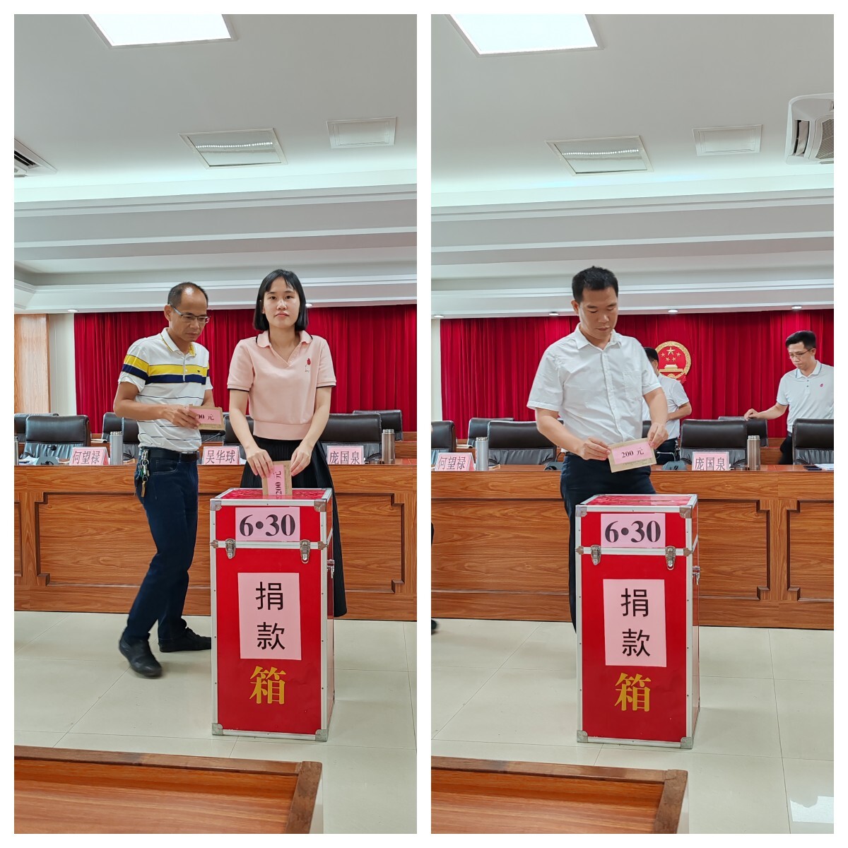 6月16日,洋青鎮(zhèn)在五樓會議室組織召開2023年“6·30”助力鄉(xiāng)村振興活動動員大會,會議由鎮(zhèn)人大主席吳華球主持,鎮(zhèn)領(lǐng)導(dǎo)班子成員、全鎮(zhèn)干部職工、各機(jī)關(guān)單位負(fù)責(zé)人、各村(社區(qū))黨支部書記等130多人參加。會議主要議程有:一是由鎮(zhèn)黨委委員陳劍波對2022年度洋青鎮(zhèn)“6·30”活動開展及資金使用情況進(jìn)行通報;二是鎮(zhèn)領(lǐng)導(dǎo)班子成員發(fā)揮先鋒模范作用現(xiàn)場募捐。