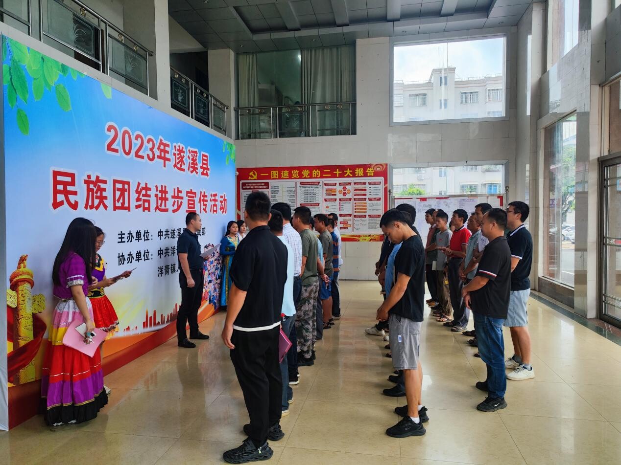 圖為洋青鎮(zhèn)開展民族團(tuán)結(jié)進(jìn)步宣傳活動現(xiàn)場
