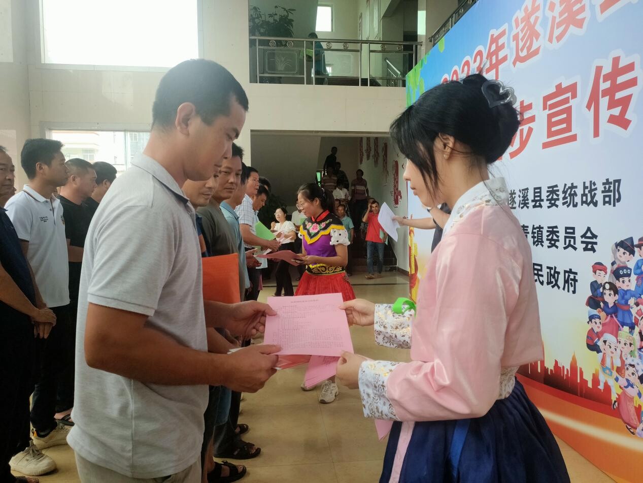 活動中,通過發(fā)放宣傳資料、現(xiàn)場答疑解惑、民族團(tuán)結(jié)知識競答等方式,向廣大群眾宣傳黨和國家的路線、方針、政策、法律法規(guī)等知識,促使廣大群眾牢固樹立正確的民族觀和宗教觀,增強(qiáng)群眾維護(hù)民族團(tuán)結(jié)、維護(hù)國家統(tǒng)一的使命感和責(zé)任心。本次活動向來往群眾發(fā)放有關(guān)民族政策文件、民族團(tuán)結(jié)進(jìn)步宣傳資料等共計80余份。
