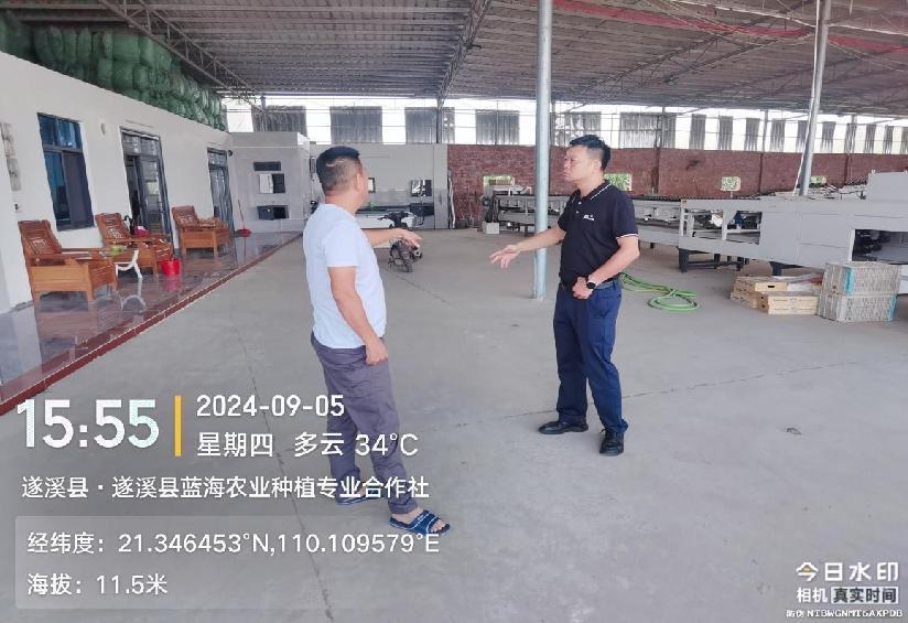 圖為鎮(zhèn)黨委書記陳榮慶到企業(yè)指導(dǎo)防風(fēng)工作