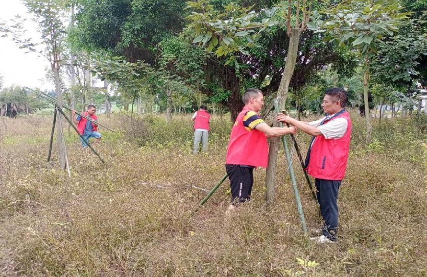古村西村委會(huì)黨員先鋒隊(duì)對(duì)胸徑8厘米以上大苗木作支架搭建,鞏固前期綠化成果,力爭(zhēng)把損失降到最低。