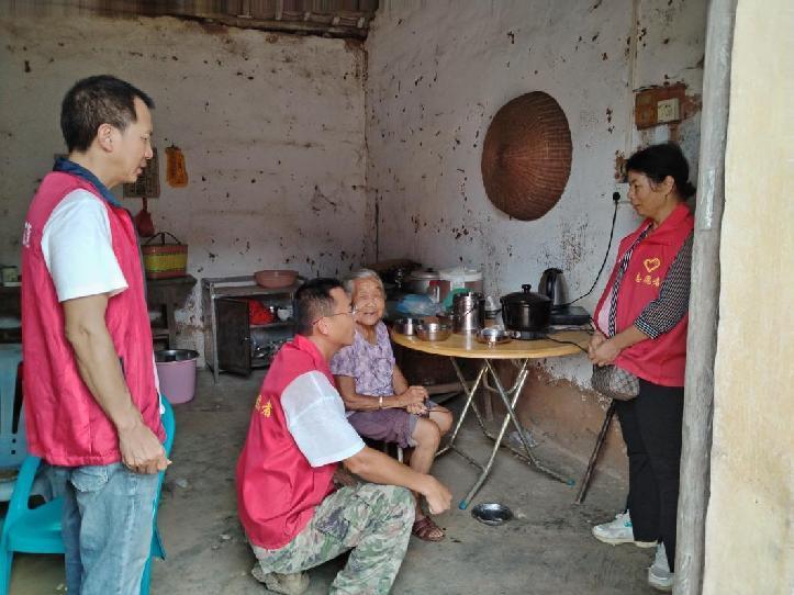 龍頭村委會(huì)黨員先鋒隊(duì)下戶走訪獨(dú)居老人,檢查房屋狀況,轉(zhuǎn)移房屋存在安全隱患的群眾。