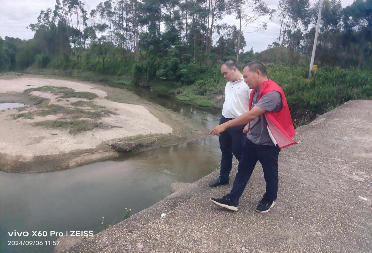 鎮(zhèn)黨委副書記、鎮(zhèn)長林智到陳屋村查看楊柑河陳屋段水文情況