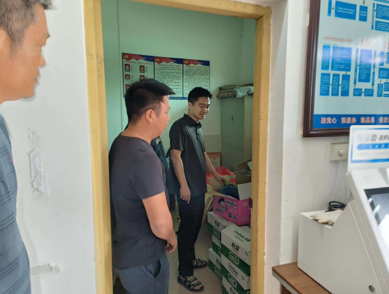 鎮(zhèn)紀(jì)委書記譚立宇到寮客村檢查應(yīng)急物資儲備情況