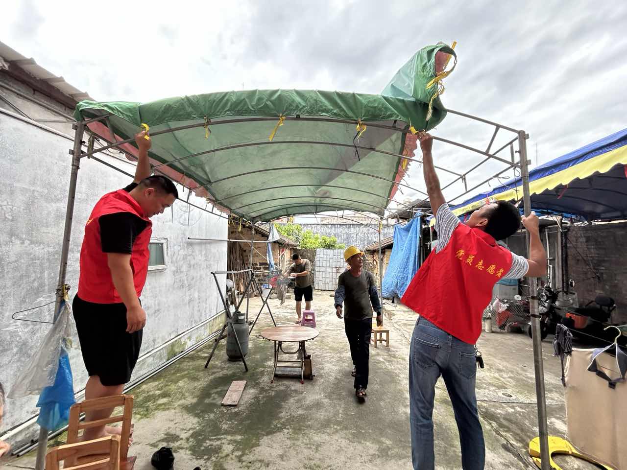 其連村黨員先鋒隊下戶為群眾拆除大棚