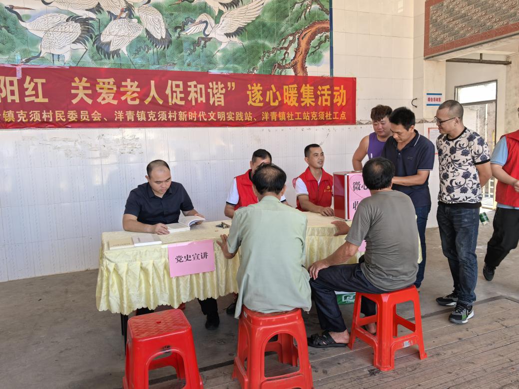 為深入貫徹落實(shí)上級(jí)部門關(guān)于提升村黨群服務(wù)中心工作質(zhì)量的決策部署,增強(qiáng)村黨組織的凝聚力和戰(zhàn)斗力,洋青鎮(zhèn)克須村黨支部大力推進(jìn)黨群服務(wù)中心提質(zhì)行動(dòng),積極打造黨員群眾的“紅色家園”。2025年5月20日上午,克須村黨群服務(wù)中心舉辦“黨建引領(lǐng)夕陽紅,關(guān)愛老人促和諧”遂心暖集活動(dòng)。活動(dòng)由村黨支部牽頭,聯(lián)合克須社工站、沙古衛(wèi)生院等單位共同開展。