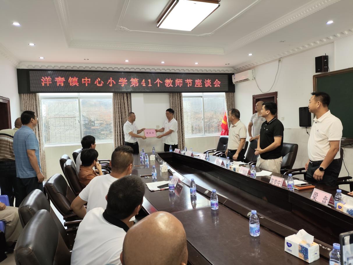 參觀過后召開教師節(jié)座談會,洋青鎮(zhèn)黨委書記陳榮慶主持會議。座談會上,朱凌靜聽取了洋青中心小學校長曹永才關(guān)于學校發(fā)展歷程、教育理念、特色建設(shè)、師生規(guī)模、學業(yè)成就、開學準備以及未來發(fā)展藍圖的詳細介紹。他代表縣委、縣政府向辛勤耕耘在教育一線的教師們表達了深切的關(guān)懷和節(jié)日的誠摯祝福,并代表慰問團為教師們送上慰問金。朱凌靜對教師們?yōu)橥苿拥胤浇逃聵I(yè)發(fā)展所付出的不懈努力與巨大貢獻致以誠摯謝意,并勉勵大家持續(xù)秉持愛崗敬業(yè)、無私奉獻的精神,堅守為黨育人、為國育才的崇高使命,注重德才兼?zhèn)?、深化學術(shù)研究、勇于創(chuàng)新實踐,克服一切艱難險阻,不斷提升個人的專業(yè)素養(yǎng)與教學能力,致力于成為學生全面發(fā)展的引路人,為國家培育更多棟梁之材。