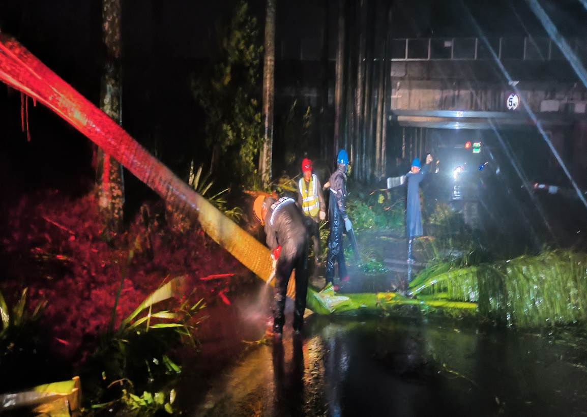 搶通道路,晝夜攻堅(jiān)護(hù)民生。10月5日晚,風(fēng)雨稍歇,鎮(zhèn)黨政主要領(lǐng)導(dǎo)第一時(shí)間冒雨投入搶險(xiǎn)救災(zāi)工作。鎮(zhèn)應(yīng)急搶險(xiǎn)隊(duì)頂著狂風(fēng)暴雨,手持電鋸分工作業(yè),在泥濘與夜色中連續(xù)奮戰(zhàn),清理倒樹180余棵,排除路障9處,及時(shí)恢復(fù)道路通行;主動(dòng)協(xié)調(diào)供電、通信部門開展搶修工作,累計(jì)搶修受損線路11公里,成功恢復(fù)3個(gè)行政村的供電與通訊,讓村民逐步重拾正常生活秩序。